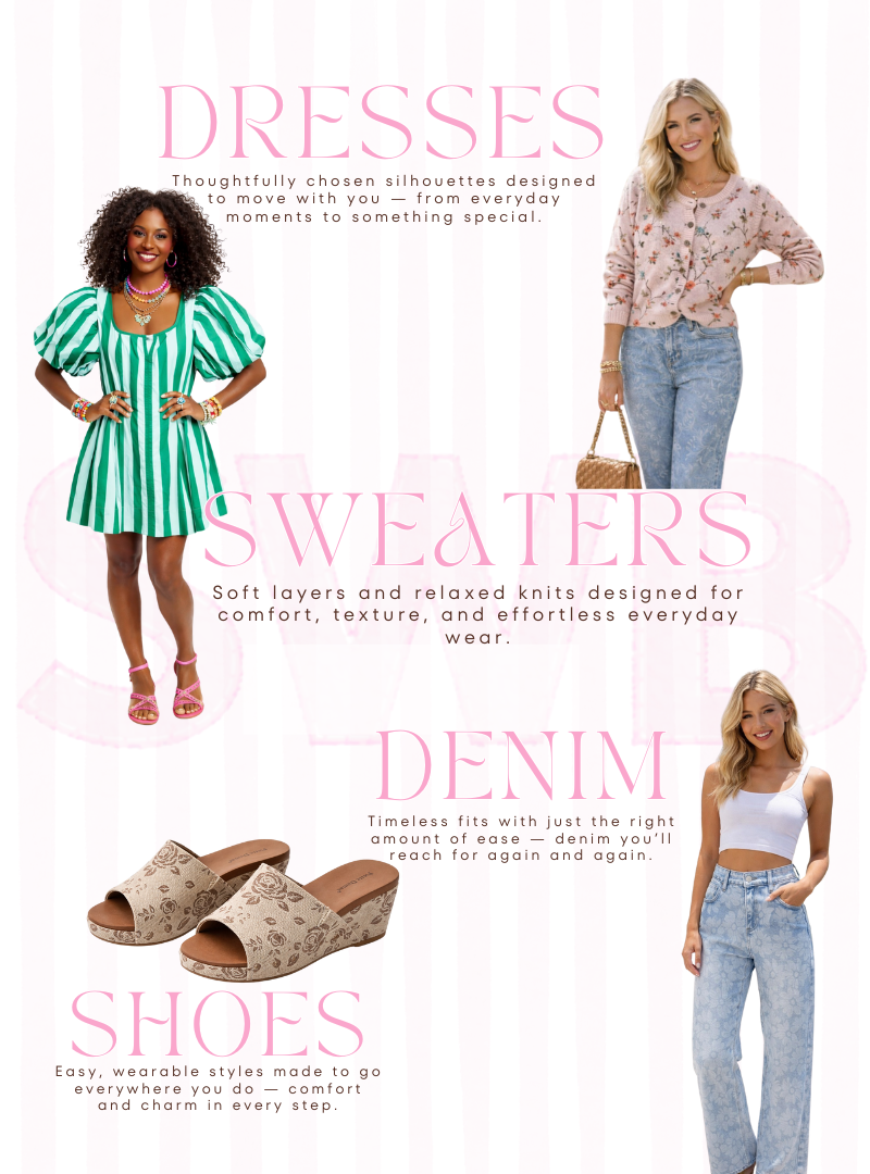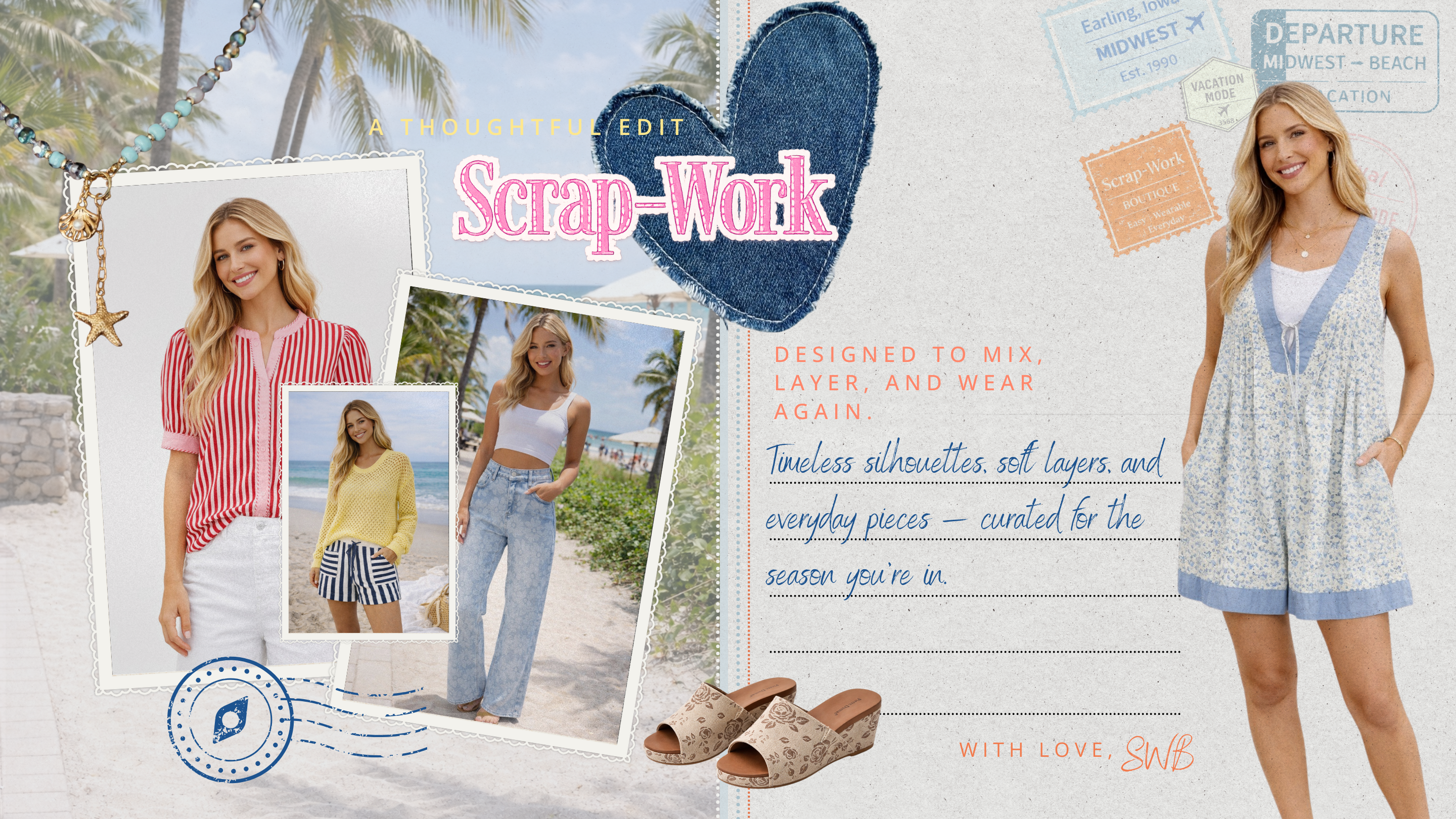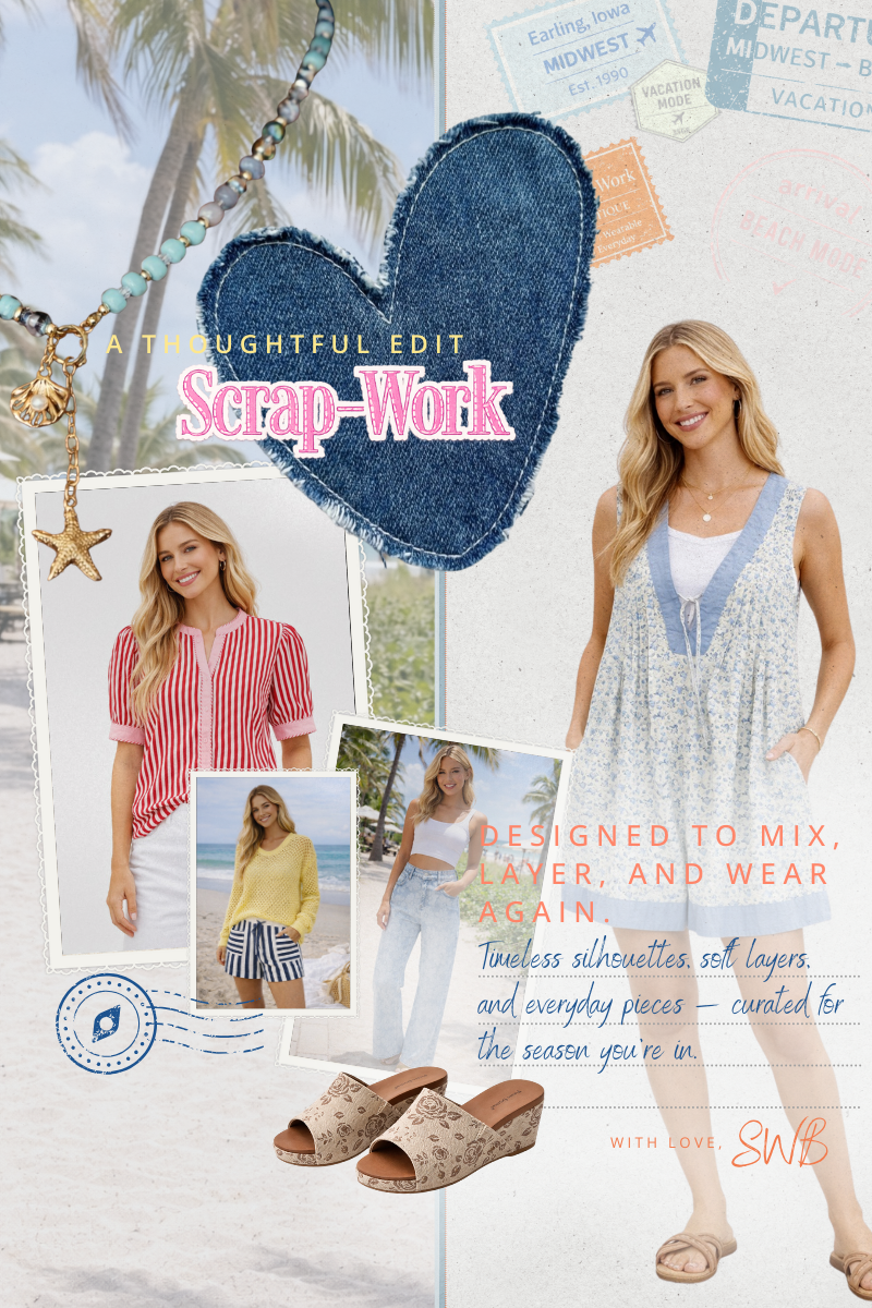 Welcome to the SWB family! We are a small team with a passion to make you feel beautiful everyday. In 1991 we started Scrap-Work as a cottage industry. It blossomed into a thriving wholesale business, and we supplied boutiques up and down the coast. Then we came full circle back to a traveling retail boutique and online site. We strive to lead the way in beachy, boho fashion for women of all ages. Bring your mom, bring your Nana, and bring your daughters. We have something wonderful for each of you!