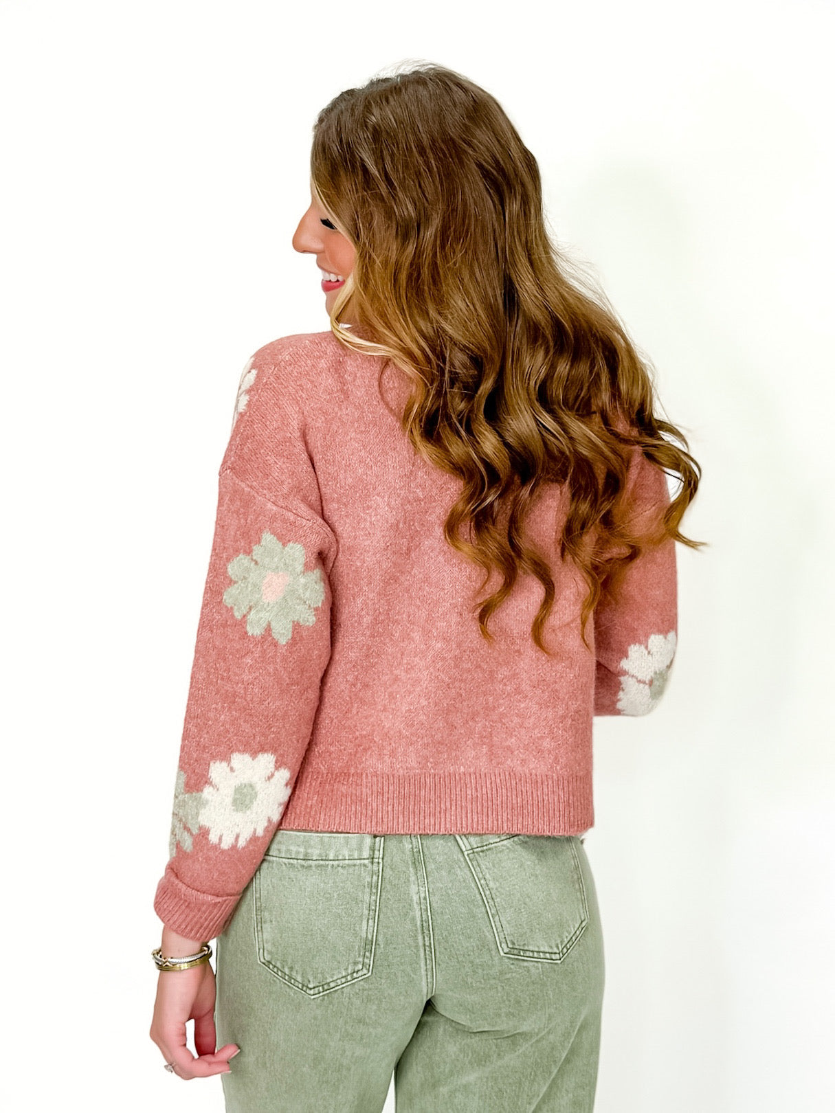 Soft, cozy, and effortlessly feminine — this blush floral knit cardigan is the statement layer your fall wardrobe needs. Featuring an allover floral pattern in muted ivory and sage tones, this button-front sweater pairs beautifully with high-rise denim or neutral trousers. The cropped fit and ribbed trim add a modern touch to this timeless design.