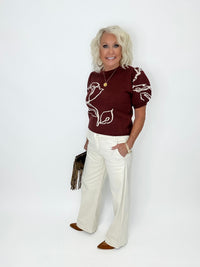 Lightweight and stylish, the Coco Brown Taupe Floral Short Sleeve Sweater is the perfect transitional piece. Designed in a soft viscose-blend knit (50% viscose, 30% polyester, 20% nylon), this sweater offers breathable comfort with a touch of stretch. The rich coco brown base is accented by taupe floral detailing, while the short puff sleeves add a modern feminine finish. Pair it with denim, skirts, or trousers for an easy day-to-night look.